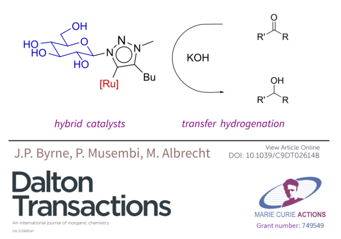 I’m delighted to finally publish this work, the first of my research carried out during my Marie Curie Fellowship in University of Bern to come out. A lot of hard work by Erasmus student Pauline went into gathering data behind this manuscript where we asked the question – what impact would incorporating carbohydrates into the structure of a Ruthenium(II)-triazolylidene complex have on its ability to convert a ketone to an alcohol via transfer hydrogenation catalysis.